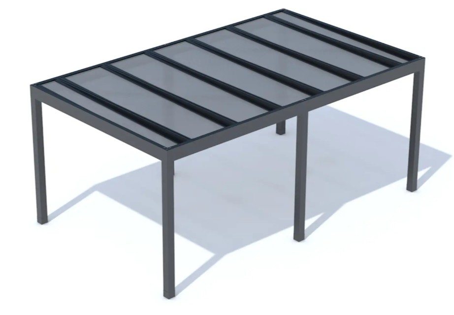 Přístřešek lze dodat i v provedení bez střechy Roofless (pouze stojky a obvodový rám).