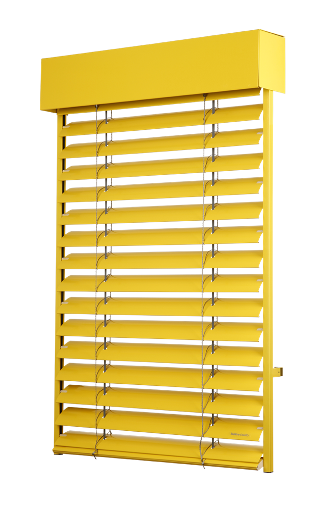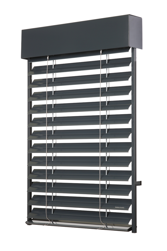 V zavřeném stavu vytváří lamely celistvou plochu, která zaručuje dokonalé zastínění, guma vlisovaná po celé délce lamely zvyšuje termoregulační efekt žaluzie. Hliníkové vodící lišty zajišťují stabilitu venkovní žaluzie ve větru a jsou podpůrným prvkem pro zabezpečení domu proti vloupání.