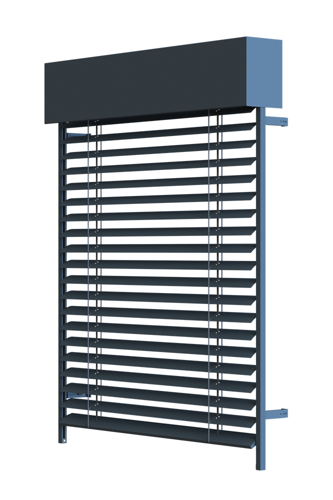 Variabilita montáže, elegance a dokonalé zastínění tvoří z této venkovní horizontální žaluzie unikátní stínicí prvek pro veškeré typy objektů.